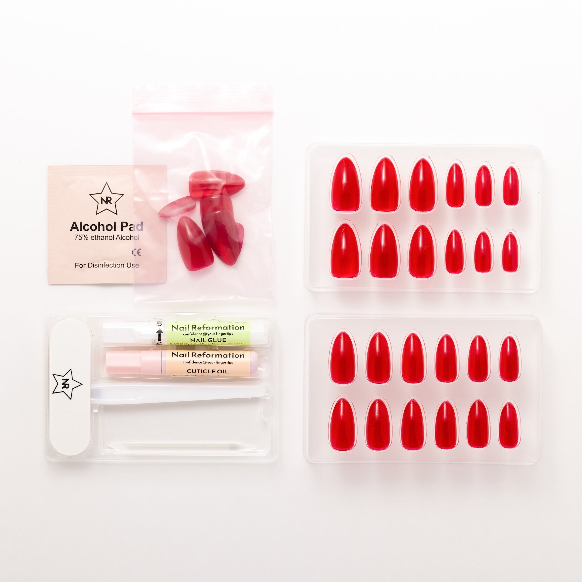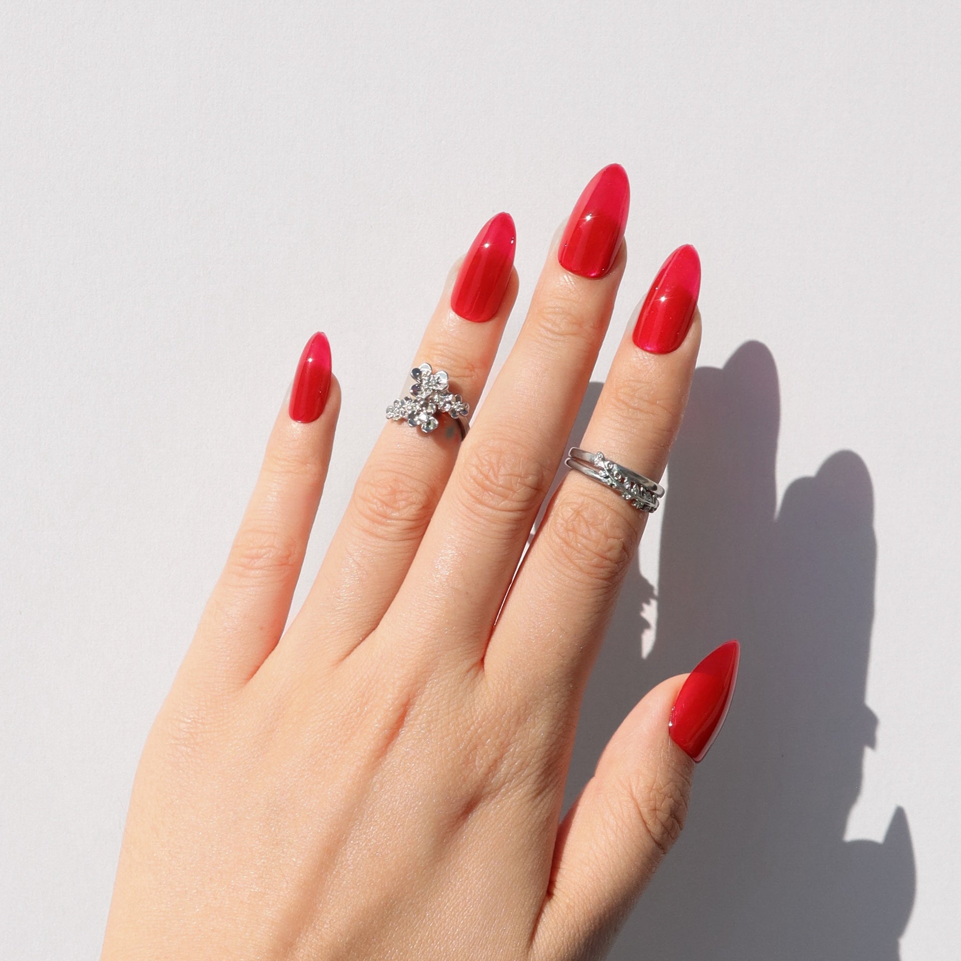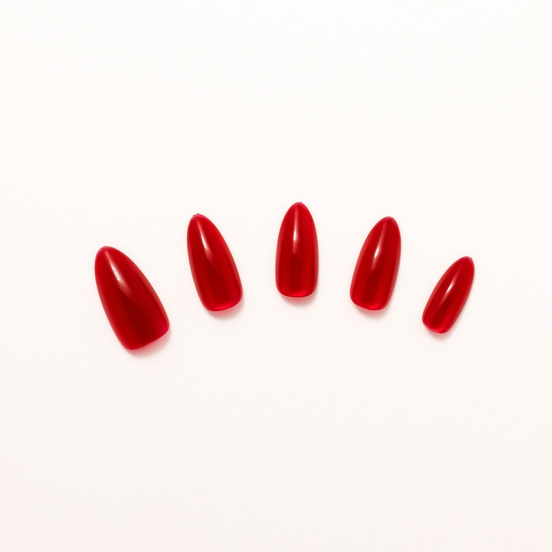 The Bloody Red medium almond press-ons are drenched in deep crimson with a glimmering cat’s-eye finish that moves like spilled wine. or something stronger. This red doesn’t play nice. Bold. unapologetic. and unafraid to stand out. it takes guts to wear a shade that bleeds this much confidence.
